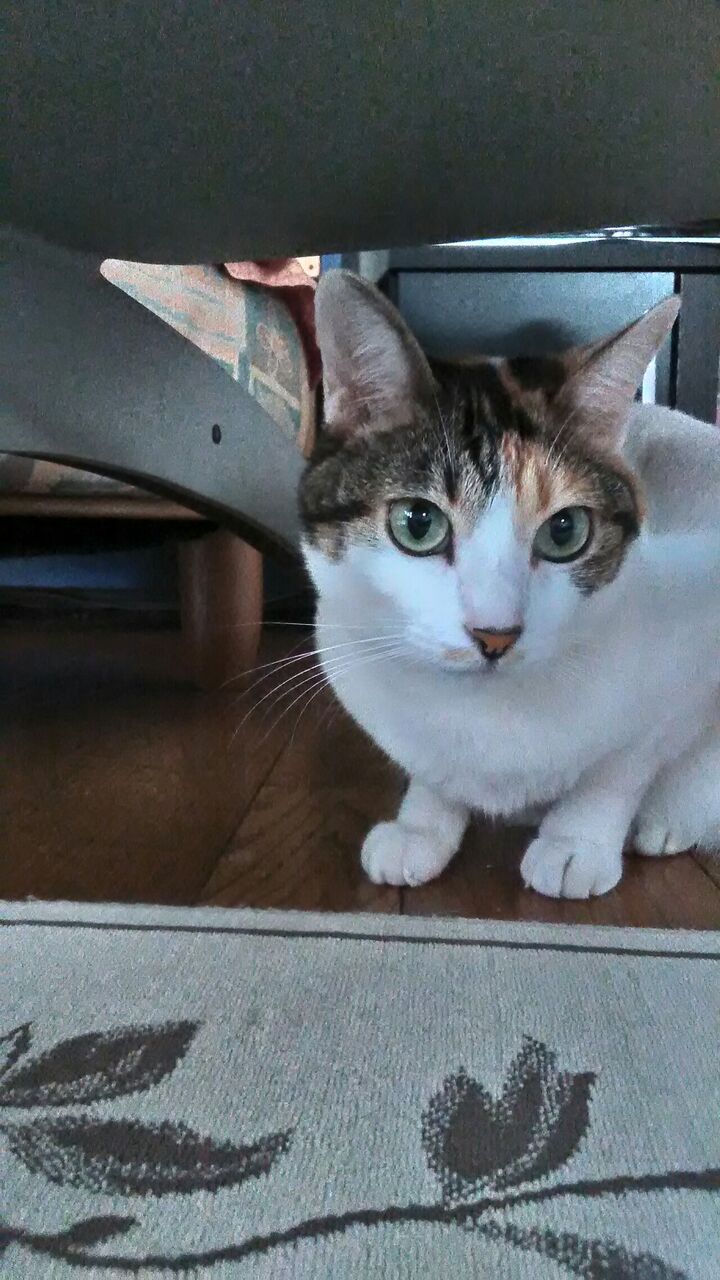 机の下に