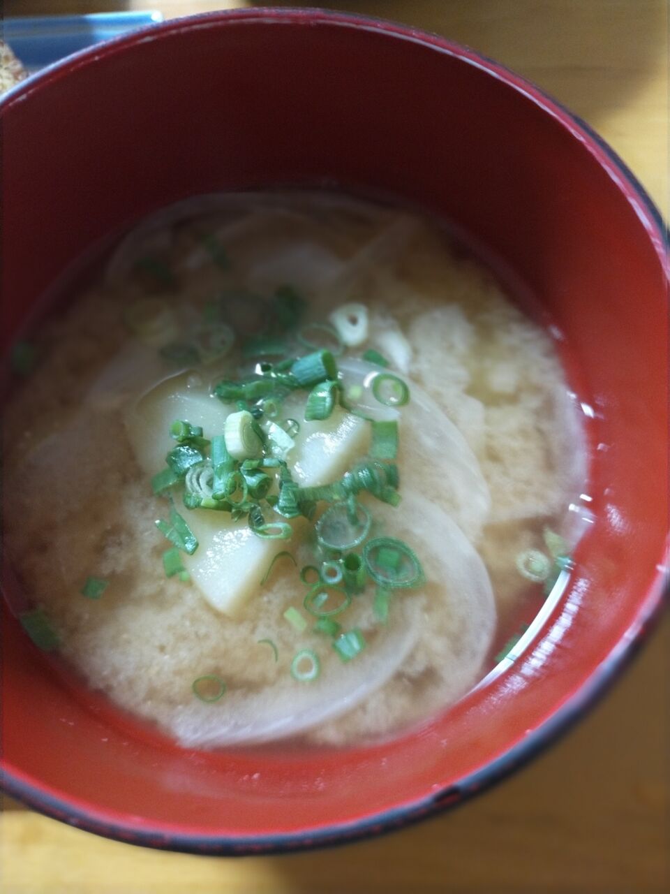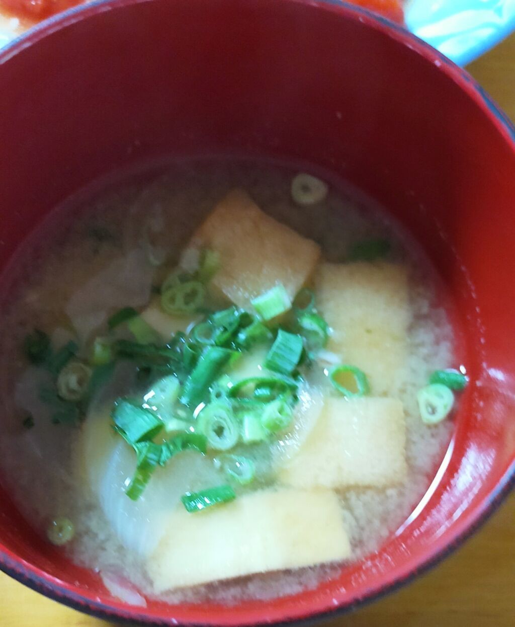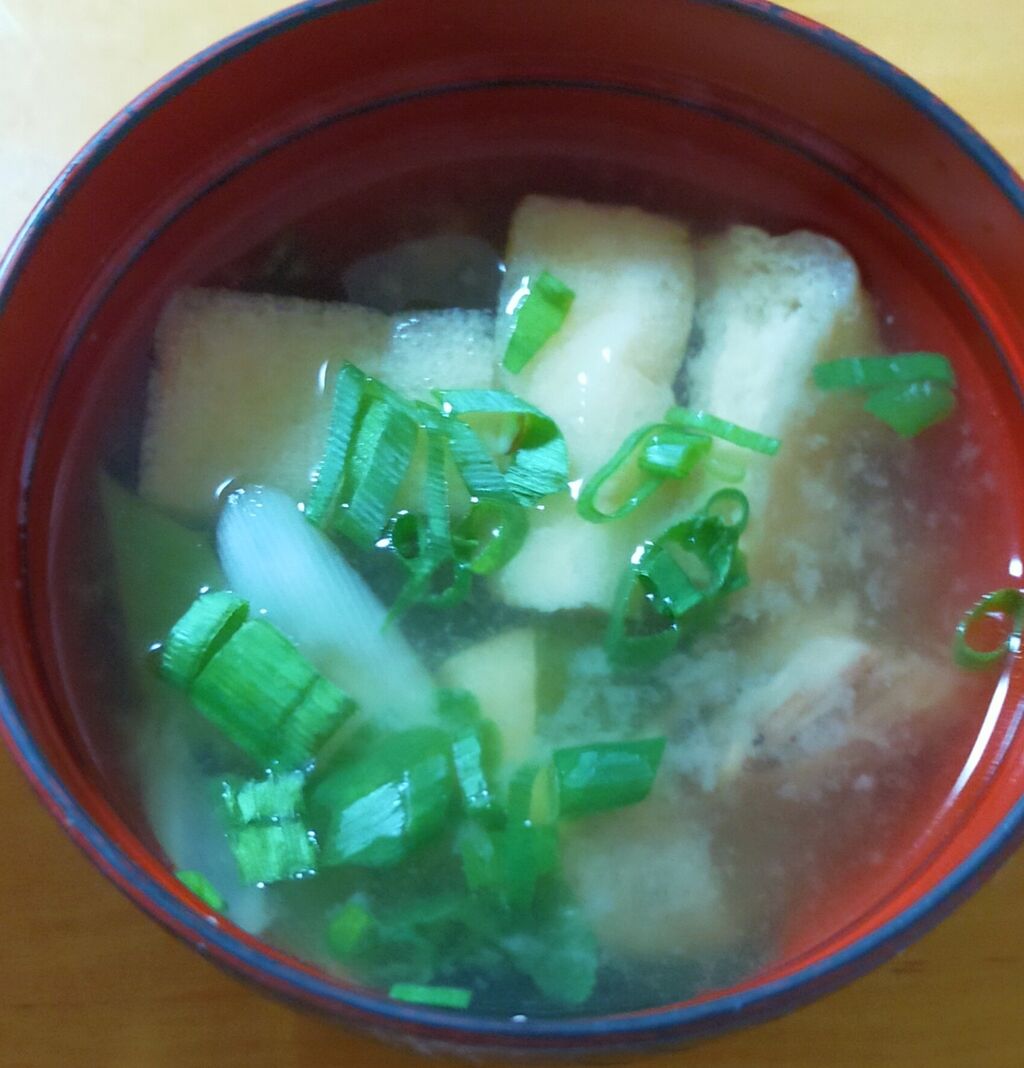 揚げさん、白葱の味噌汁