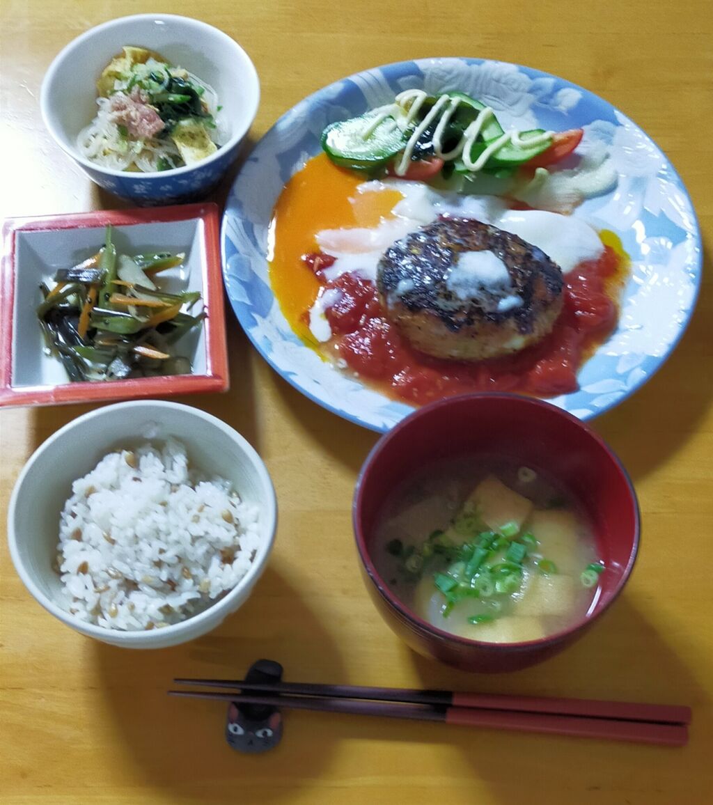 厚揚げ、塩揉み胡瓜🥒塩昆布の和え物
