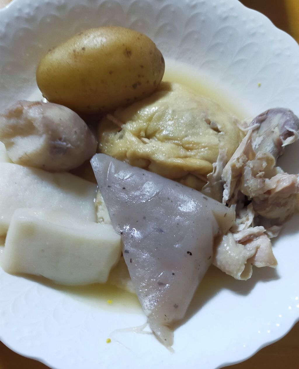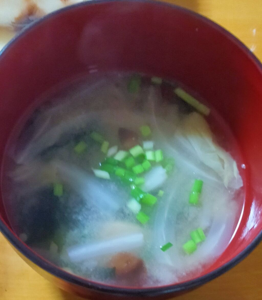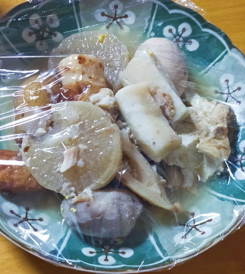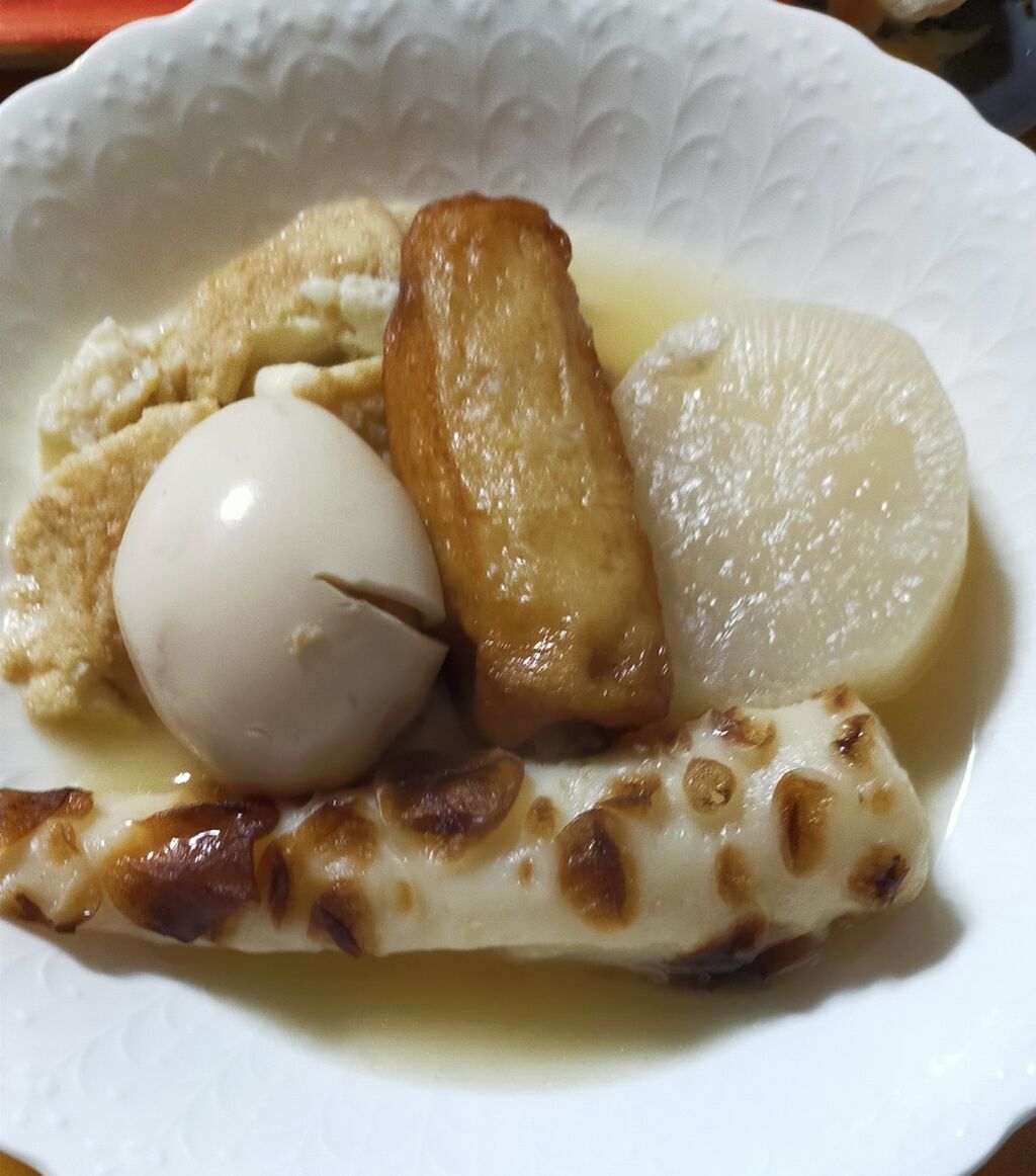 すき焼きの残った牛肉、糸こん、椎茸、白ネギを炒めて
