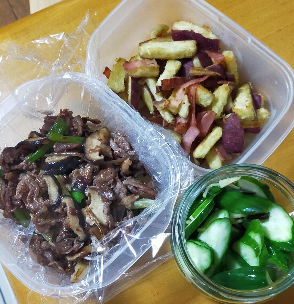 レンチン薩摩芋、ベーコンを炒めて、白だし、蜂蜜を絡めました