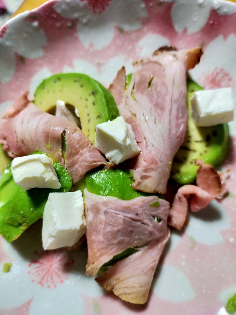 アボカド、豚ロースト(半額)クリームチーズをのっけて