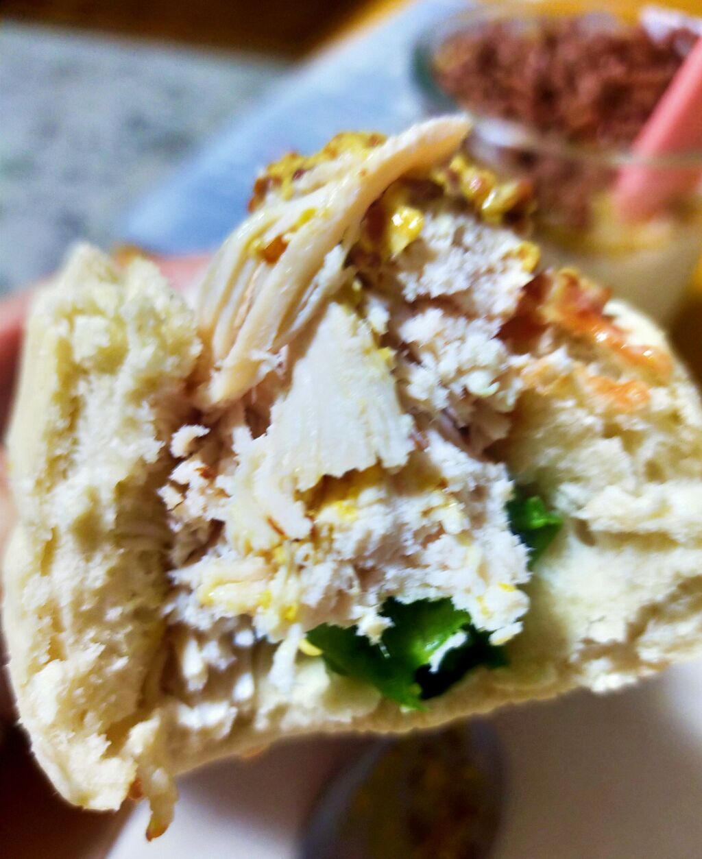 ローストチキンをパンに