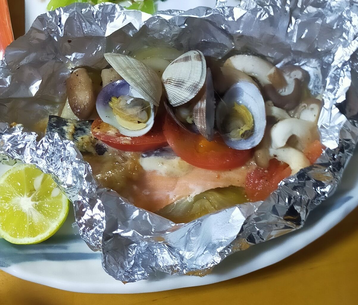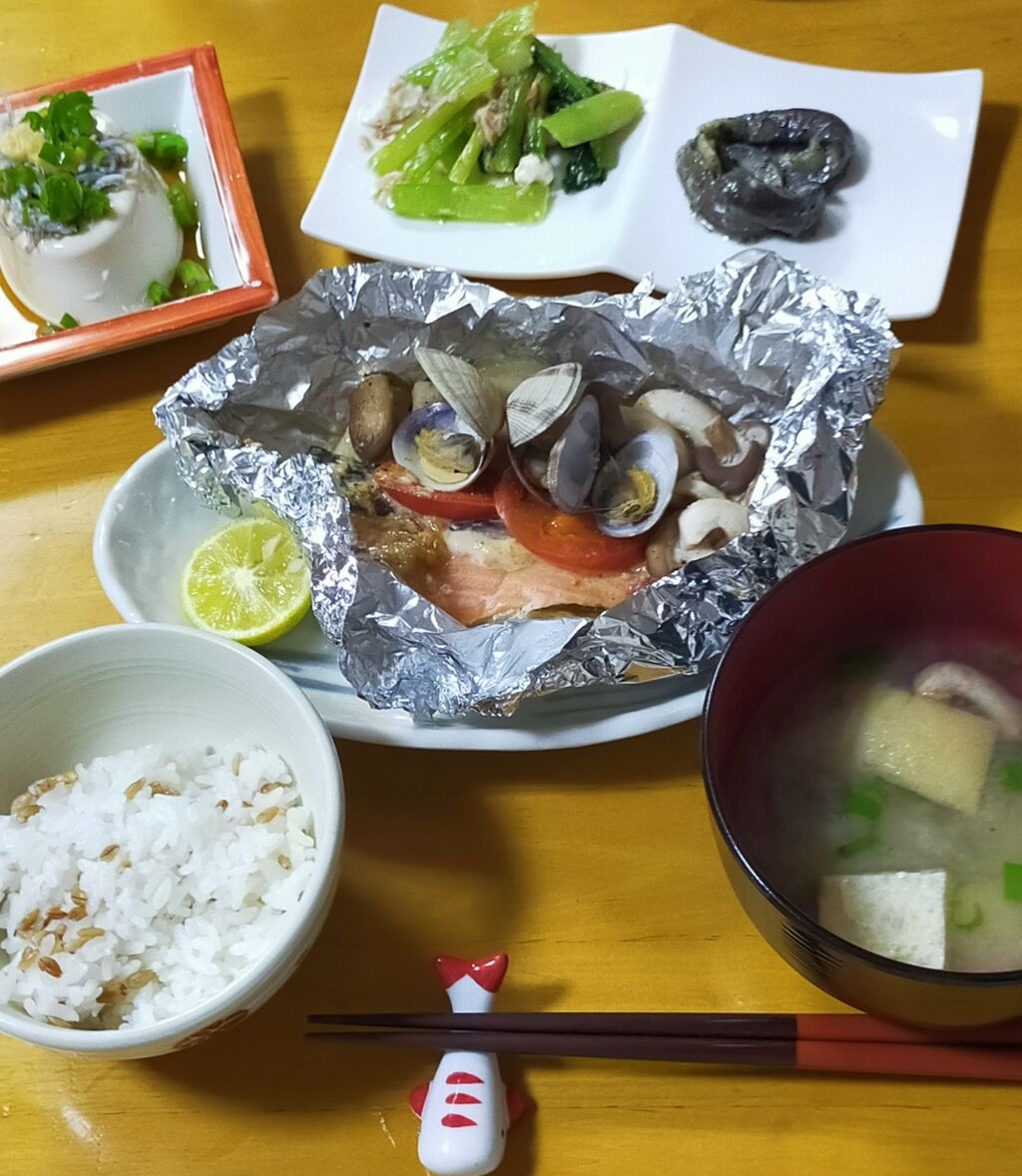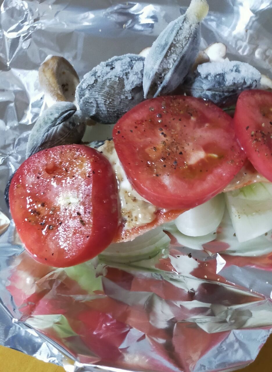 鮭、玉葱🧅アサリ、トマト🍅のホイル焼き