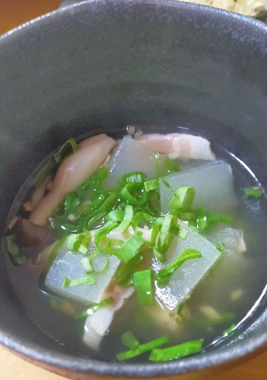 冬瓜、ベーコン🥓しめじの生姜スープ