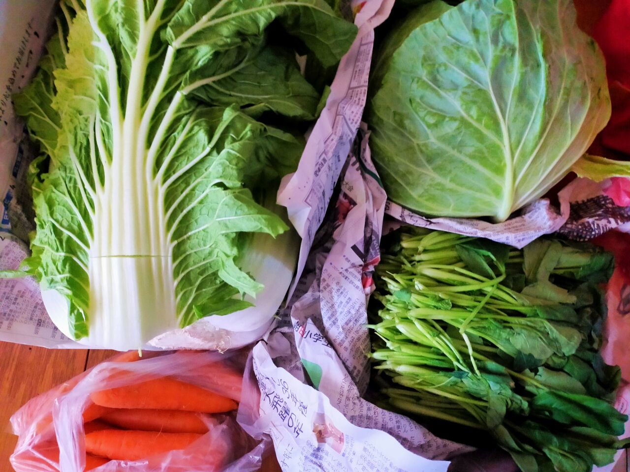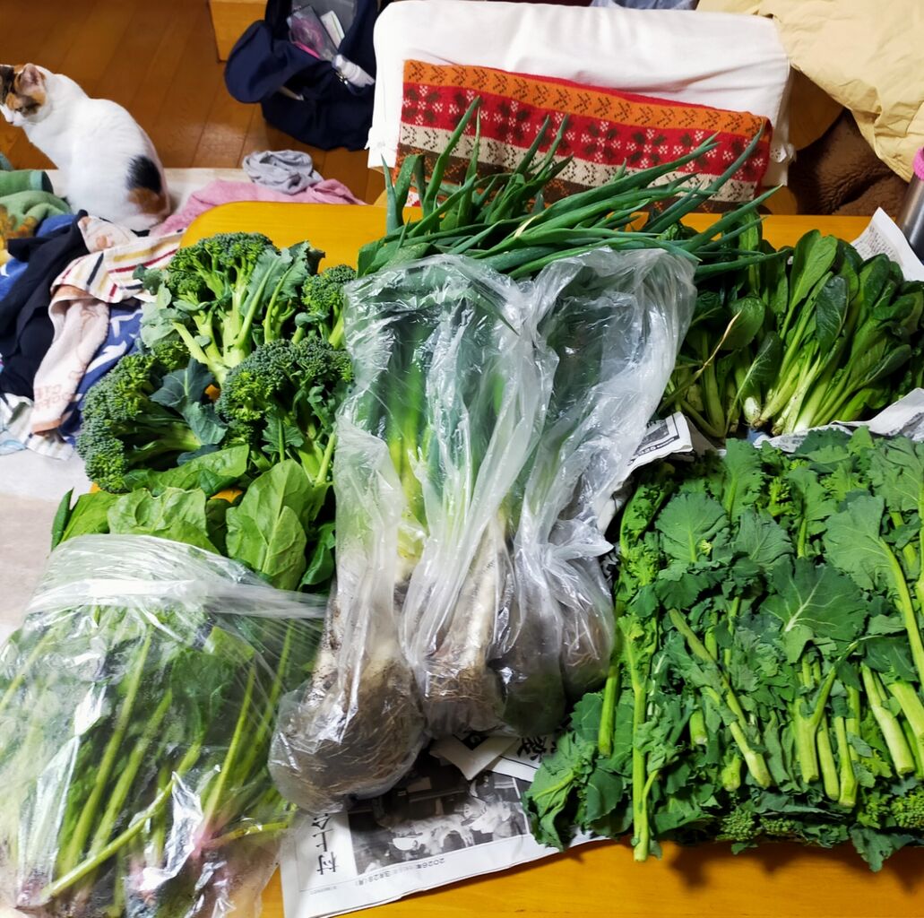 ブロッコリー、小松菜、菜の花、ほうれん草、大量の葱が届き、良江姉ちゃんの綺麗な文字の手紙が入っていて