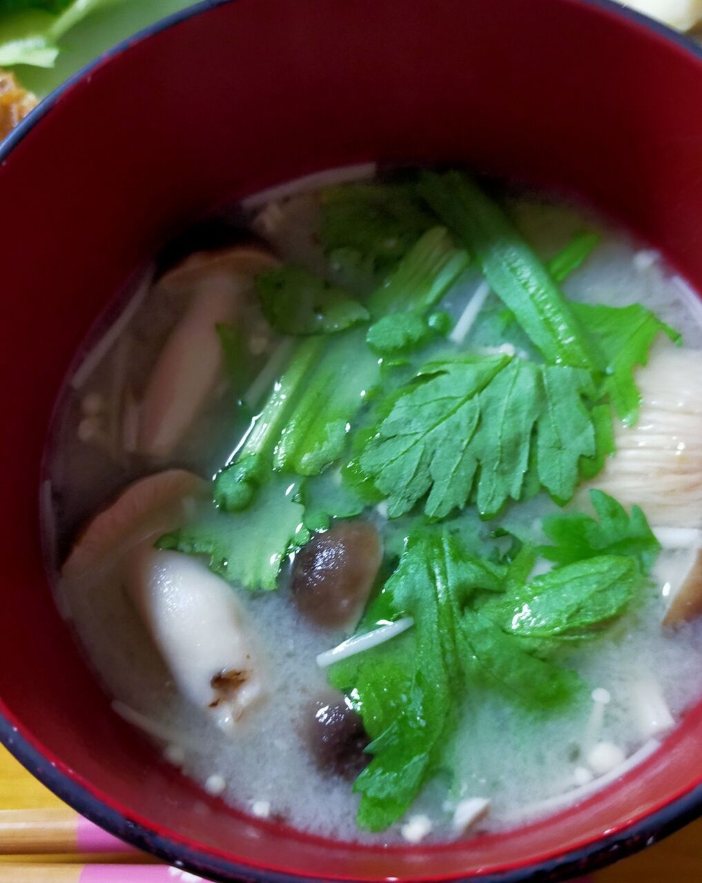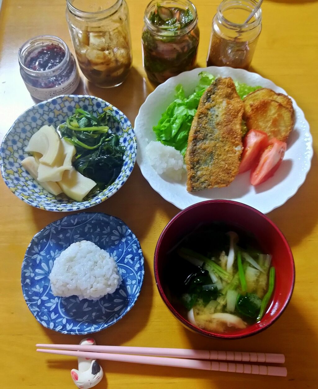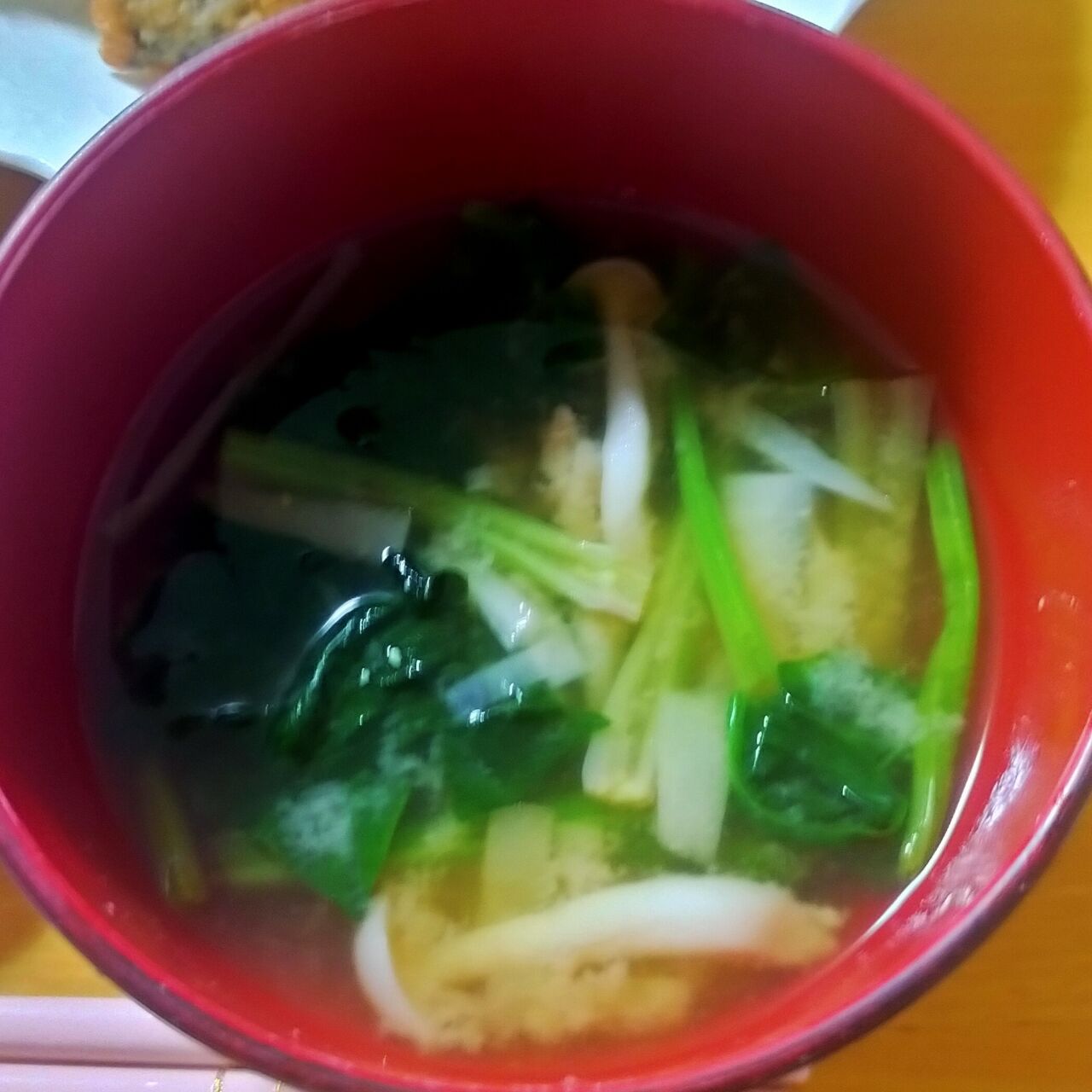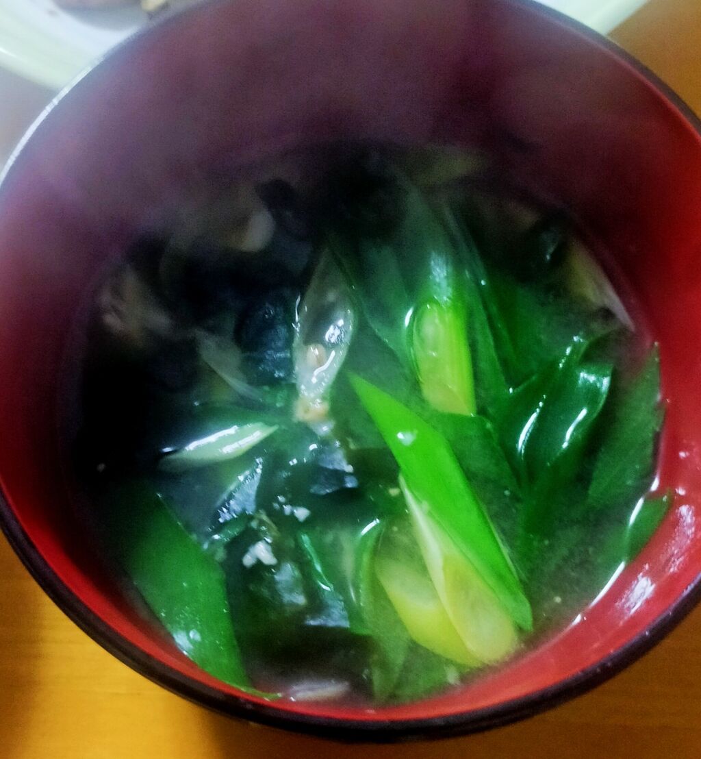 葱たっぶりとワカメの味噌汁